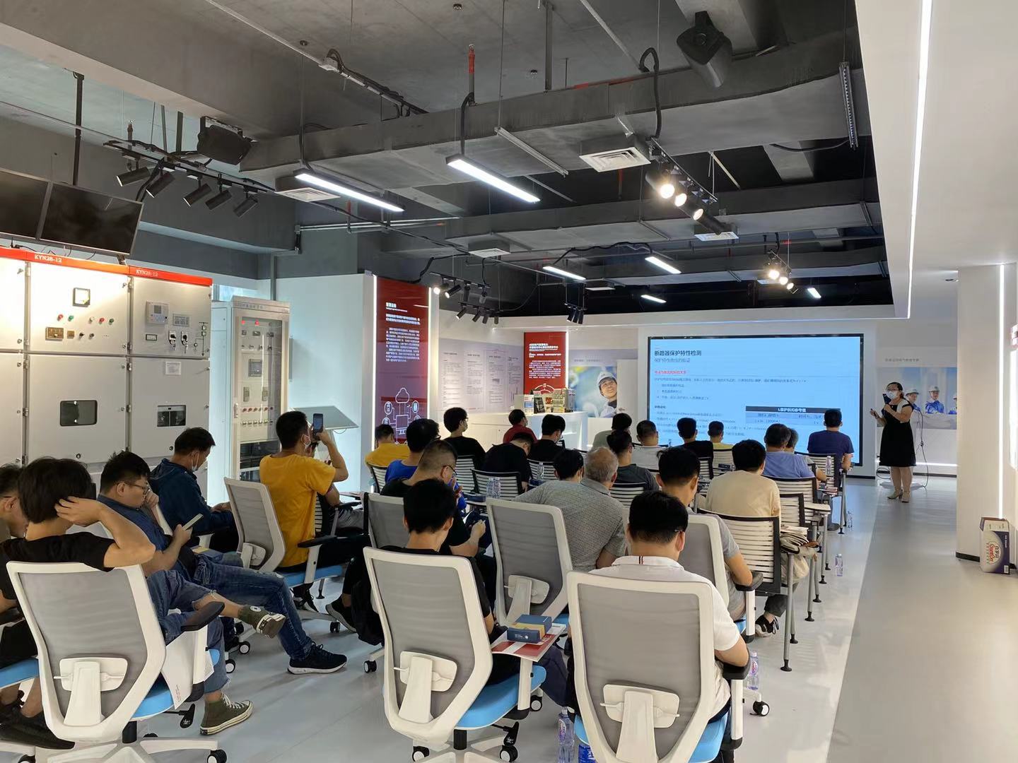 作為新時(shí)代數(shù)字化展廳,通意達(dá)研發(fā)中心處處呈現(xiàn)現(xiàn)代化科技的氣息,設(shè)有智能電網(wǎng)和微電網(wǎng)系統(tǒng)展示;中低壓柜和環(huán)網(wǎng)柜等多種柜型;中低壓電氣元件、變頻和PLC等自動(dòng)化系統(tǒng),同時(shí)配置全套試驗(yàn)設(shè)備,現(xiàn)場培訓(xùn)用教具供學(xué)員實(shí)操學(xué)習(xí),部分電氣產(chǎn)品可進(jìn)行通電操作,現(xiàn)場可對學(xué)員進(jìn)行理論和實(shí)操的標(biāo)準(zhǔn)化和定制化培訓(xùn)和考核。